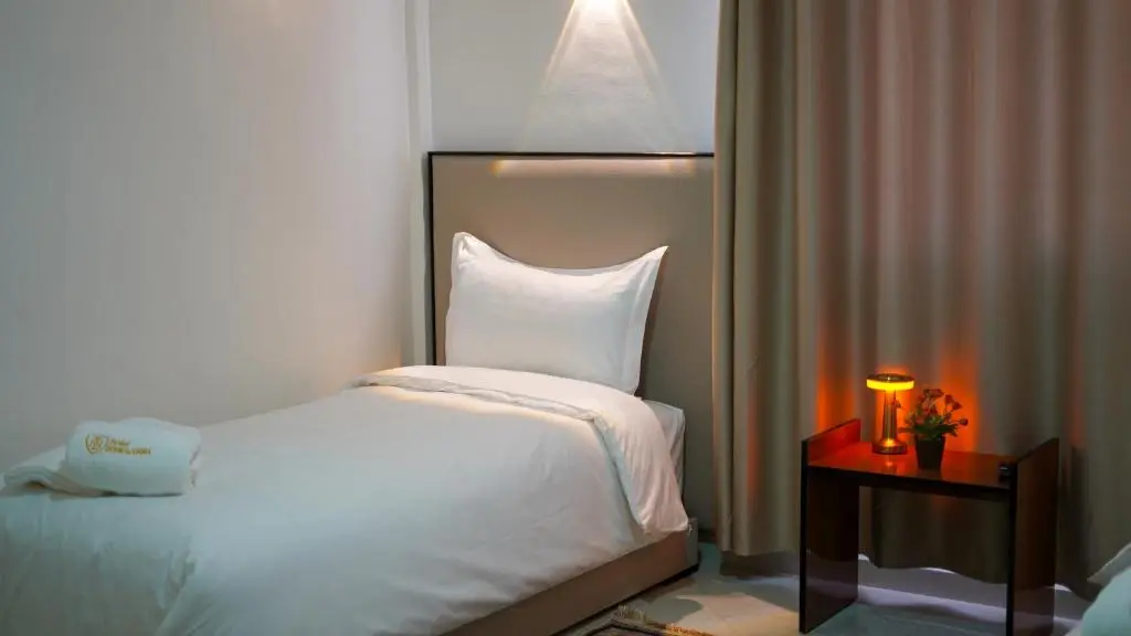 Ideal for friends or colleagues, the Twin Room features two separate twin beds in a well-designed, comfortable setting. Enjoy a restful stay with practical amenities and easy access to hotel services. Size: 18 m².